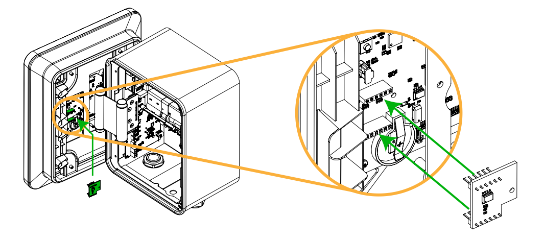Dicho kit fotovoltaico consta de un “dongle”, el cual debe conectarse en el puerto de expansión de la parte trasera de la pantalla del cargador (ver figura siguiente).