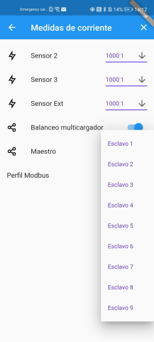 En la instalación puede haber entre 1 y 9 cargadores esclavos. A cada cargador se le debe configurar el perfil de modbus.
