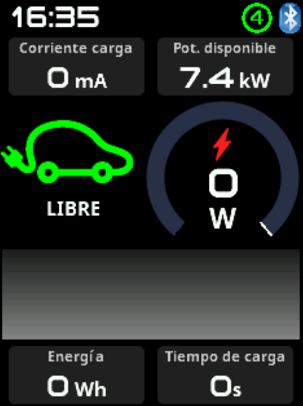 En el caso del cargador maestro el número de este icono muestra el número de cargadores conectados en ese momento. El color de este icono dará información sobre los cargadores. Si es verde quiere decir que están conectados el número de cargadores que se había seleccionado en la configuración y por tanto el número deberá ser igual al número de cargadores que se han seleccionado en la configuración. Si es naranja quiere decir que se han encontrado menos cargadores de los configurados en la configuración. Por último si es amarillo implica que hay cargadores que se había conectado en el arranque pero de los cuales se ha perdido la comunicación. En cualquiera de los 3 casos, el cargador realizará el algoritmo de balanceo y permitirá la carga a aquellos cargadores que sí estén conectados.